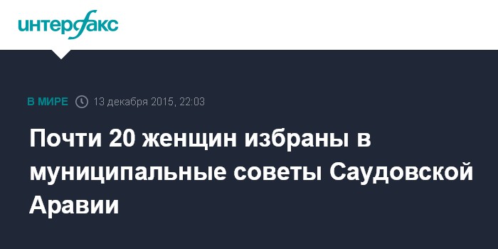 Москва. 13 декабря. INTERFAX.RU - Как минимум 19 женщин будут заседать в муниципальных советах в Саудовской Аравии, сообщило в воскресенье агентство Associated Press.