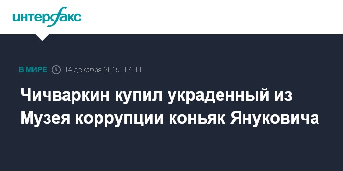 Москва. 14 декабря. INTERFAX.RU - Экс-владелец "Евросети" Евгений Чичваркин купил украденный из Музея коррупции коньяк, подаренный бывшему президенту Украины Виктору Януковичу. Об этом сам бизнесмен написал в фейсбуке.