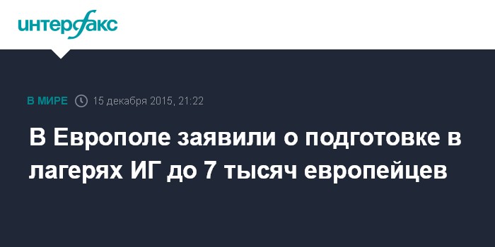 Москва. 15 декабря. INTERFAX.RU - Подготовку в лагерях "Исламского государства" (ИГ, террористическая группировка, запрещенная в России) прошли 5-7 тысяч европейцев, заявил директор Европола Роберт Уэйнрайт.