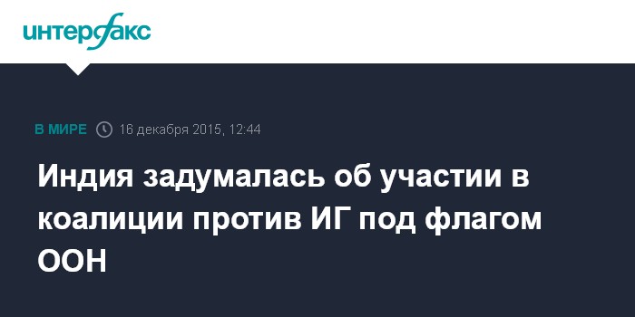 Москва. 16 декабря. INTERFAX.RU - Индия может присоединиться к коалиции против "Исламского государства" (запрещенного в России) под флагом ООН, если будет соответствующая резолюция, сообщает телеканал NDTV.