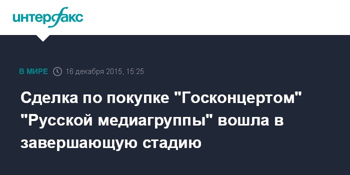 Сделка по покупке "Госконцертом" "Русской медиагруппы" вошла в завершающую стадию