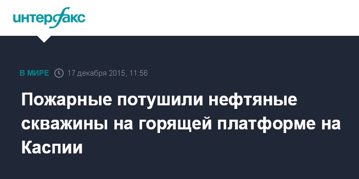 Москва. 17 декабря. INTERFAX.RU - Нефтяные скважины на горящей платформе №10 на месторождении "Гюнешли" на Каспии полностью потушены, сообщил в четверг агентству "Интерфакс-Азербайджан" глава пресс-службы SOCAR Низамеддин Гулиев.