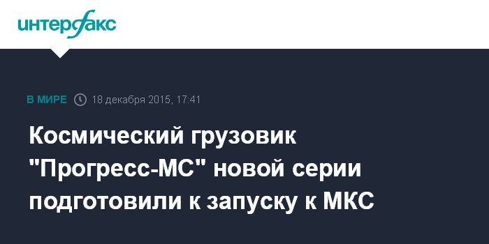 "Это будет первый запуск транспортного корабля новой серии "МС".