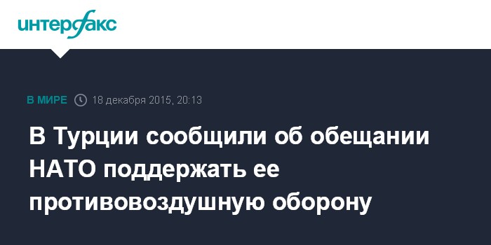 В Турции сообщили об обещании НАТО поддержать ее противовоздушную оборону