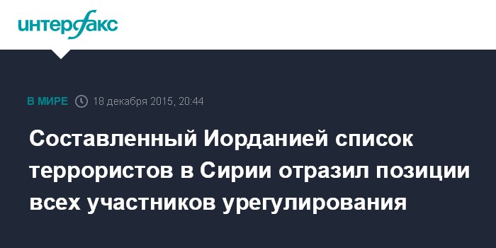 Составленный Иорданией список террористов в Сирии отразил позиции всех участников урегулирования