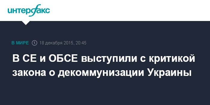 Москва. 18 декабря. INTERFAX.RU - Украинский закон о запрете пропаганды "коммунистического и национал-социалистического (нацистского) тоталитарных режимов в Украине" в целом правомерен, но не соответствует европейским законодательным стандартам, говорится в пятницу в совместном коммюнике Венецианской комиссии Совета Европы и ОБСЕ/БДИПЧ.