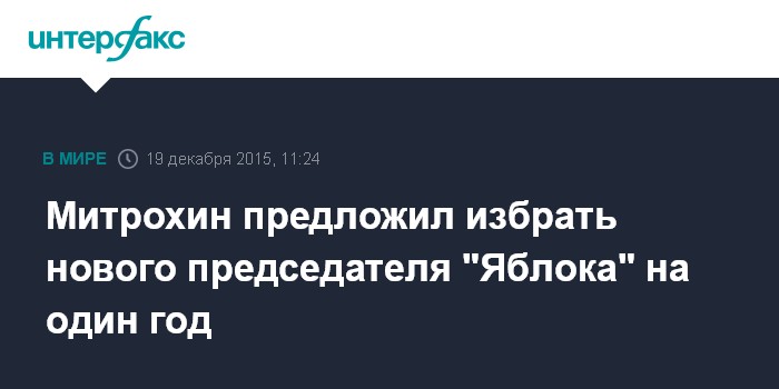Москва. 19 декабря. INTERFAX.RU - Лидер партии "Яблоко" Сергей Митрохин предлагает избрать нового председателя партии на однолетний срок.