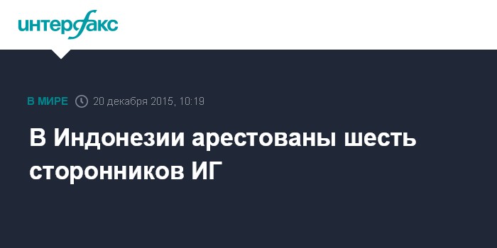 Москва. 20 декабря. INTERFAX.RU - Службы безопасности Индонезии в ходе антитеррористических рейдов с пятницы по воскресенье арестовали шесть человек, имеющих связи с группировкой "Исламское государство" (запрещена в РФ) и подозреваемых в подготовке терактов, сообщает в воскресенье местное издание The Jakarta Globe.