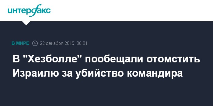 Москва. 21 декабря. INTERFAX.RU - Лидер "Хезболлы" Хасан Насралла в понедельник пообещал отомстить Израилю за ликвидацию одного из командиров этой ливанской группировки Самира Кантара, сообщает агентство АП.