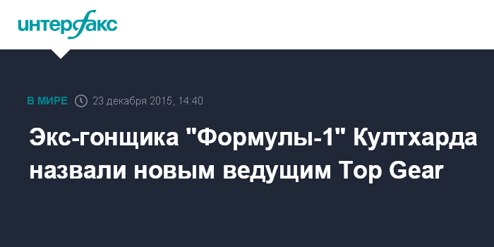 Экс-гонщика "Формулы-1" Култхарда назвали новым ведущим Top Gear
