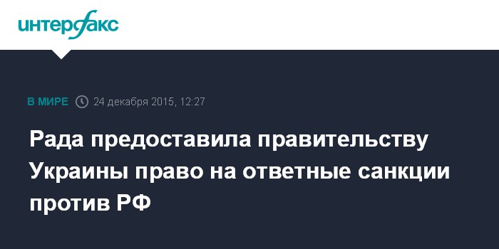 Москва. 24 декабря. INTERFAX.RU - Верховная рада Украины в четверг приняла закон, позволяющий кабинету министров применять меры в сфере внешнеэкономической деятельности в ответ на дискриминационные действия "государства-агрессора" относительно Украины.