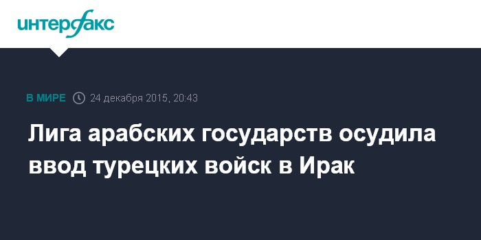 Москва. 24 декабря. INTERFAX.RU - Министры иностранных дел Лиги арабских государств (ЛАГ) выступили в четверг с резким осуждением по поводу ввода Турцией своих военных сил в Ирак, сообщают западные СМИ.