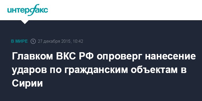 Москва. 27 декабря. INTERFAX.RU - Российские Воздушно-космические силы за все время проведения операции в Сирии ни разу не нанесли ударов по гражданским объектам, заявил главком ВКС РФ Виктор Бондарев