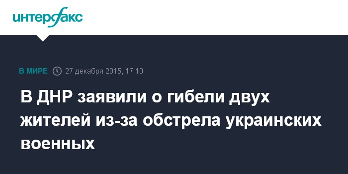 В ДНР заявили о гибели двух жителей из-за обстрела украинских военных