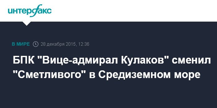 "На основе плановой ротации СКР "Сметливый" в Средиземном море сменил большой противолодочный корабль Северного флота "Вице-адмирал Кулаков"", - сказано в сообщении пресс-службы ЧФ, поступившем в "Интерфакс" в понедельник.