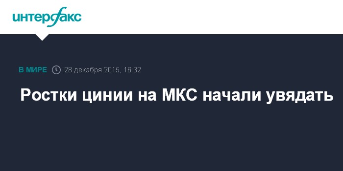 Москва. 28 декабря. INTERFAX.RU - Проросшие 24 декабря на борту Международной космической станции ростки цинии начали увядать. Командир 46 экипажа МКС Скотт Келли опубликовал в твиттере фотографию растений и написал, что " цветы выглядят не очень хорошо".
