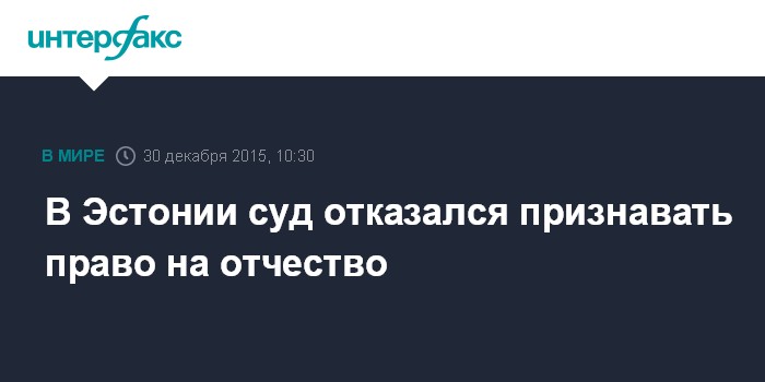 Москва. 30 декабря. INTERFAX.RU - Таллинский административный суд признал правомерным действия департамента полиции и погранохраны, отказавшего вписать отчество в паспорт правозащитника Мстислава Русакова.