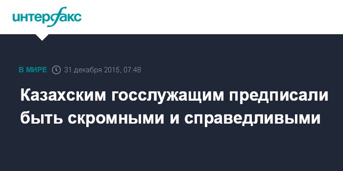Москва. 31 декабря. INTERFAX.RU - Президент Казахстана Нурсултан Назарбаев утвердил Этический кодекс государственных служащих.