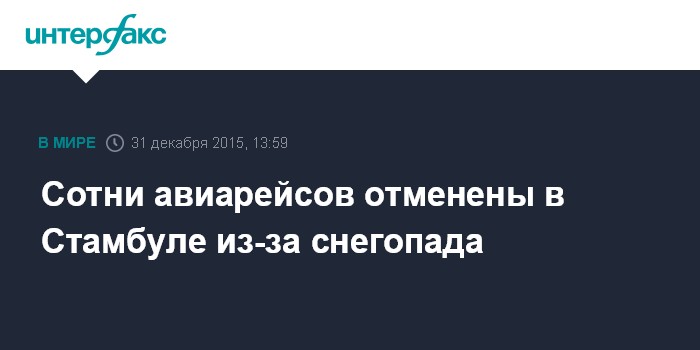 Москва. 31 декабря. INTERFAX.RU - Снегопады вызвали серьезные осложнения в работе стамбульских аэропортов, в четверг отменены уже несколько сотен авиарейсов, сообщают европейские СМИ.