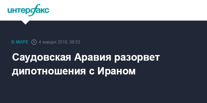 Москва. 4 января. INTERFAX.RU - Саудовская Аравия объявила о разрыве дипломатических отношений с Ираном после резких заявлений иранского руководства и нападения на саудовское посольство в Тегеране, передает британская телерадиовещательная корпорация "Би-би-си".