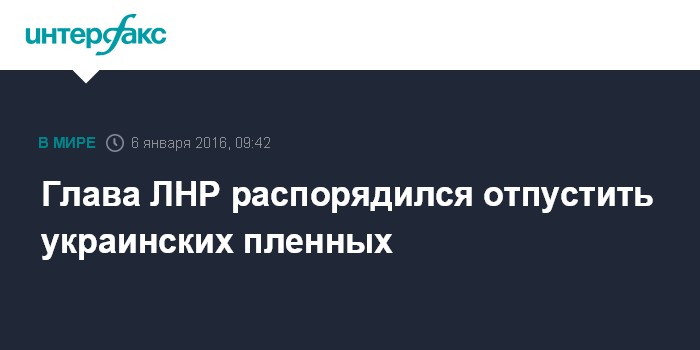 Москва. 6 января. INTERFAX.RU - Глава самопровозглашенной Луганской народной республики Игорь Плотницкий дал указание отпустить домой пленных военных Вооруженных сил Украины, которые находятся на территории ЛНР, сообщает в среду Луганский информационный центр.