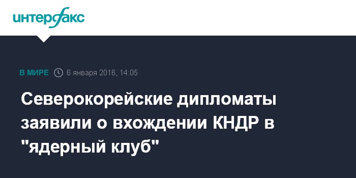 Москва. 6 января. INTERFAX.RU - КНДР вошла в клуб стран, обладающих ядерным оружием, но не будет применять его первой, кроме того, обещает не передавать средства и технологии третьим странам, говорится в пресс-релизе северокорейского посольства, который поступил в "Интерфакс" в среду.