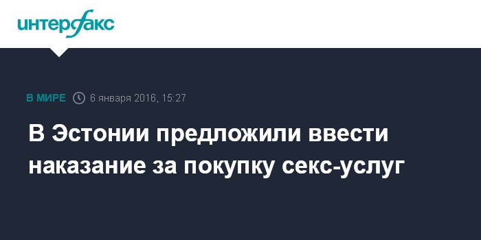Москва. 6 января. INTERFAX.RU - Министр юстиции Эстонии Урмас Рейнсалу (Urmas Reinsalu) отправил другим министерствам письмо с предложением принять участие в разработке законопроекта, запрещающего покупку секс-услуг.