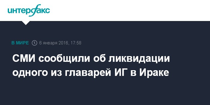 Москва. 6 января. INTERFAX.RU - Иракские ВВС уничтожили одного из главарей "Исламского государства" (террористическая группировка, запрещенная в России), которого называли "министром войны" этой организации, сообщает в среду иранский англоязычный телеканал "Пресс-ТВ" со ссылкой на ливанский новостной портал "Аль-Ахед".