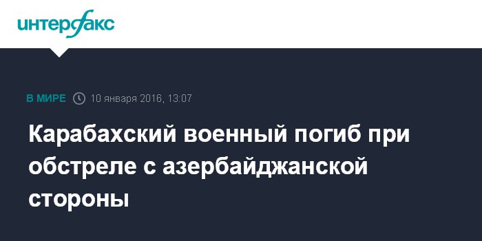 Москва. 10 января. INTERFAX.RU – Военнослужащий армии непризнанной Нагорно-Карабахской республики (НКР) погиб в результате обстрела с позиций азербайджанских военных, сообщили в воскресенье в Минобороны НКР.