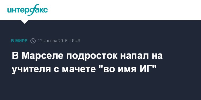 Москва. 12 января. INTERFAX.RU - 15-летний подросток из Марселя напал с мачете на преподавателя, сообщает The Independent.