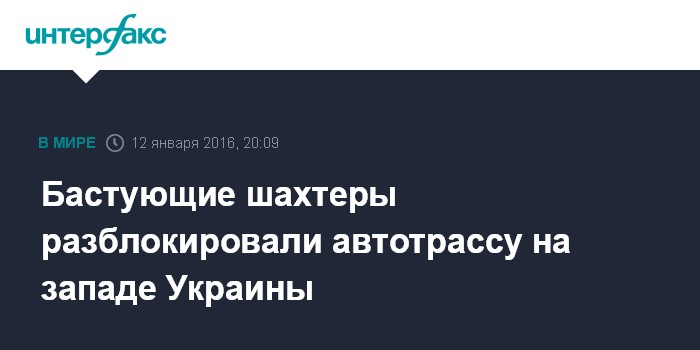 Москва. 12 января. INTERFAX.RU -- Горняки госпредприятия "Львовуголь" прекратили блокировать автодорогу Львов-Рава-Русская, сообщает отдел управления превентивной деятельности ГУ Национальной полиции во Львовской области.