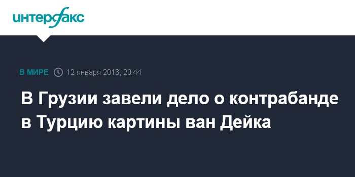 Москва. 12 января. INTERFAX.RU - Следственная служба министерства финансов Грузии во вторник сообщила о начале расследования в связи с ситуацией вокруг вывезенной из страны и обнаруженной на прошлой неделе в Стамбуле картины предположительно Антониса ван Дейка.