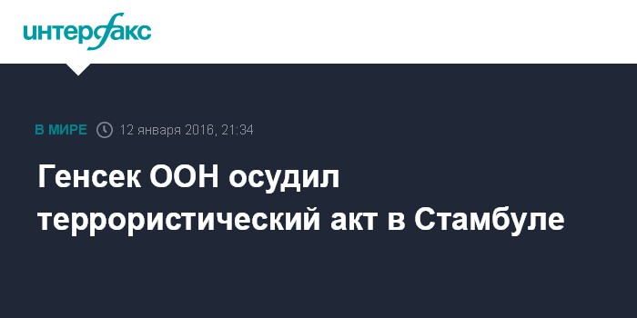 Москва. 12 января. INTERFAX.RU - Генсек ООН Пан Ги Мун выступил с осуждением теракта в Стамбуле, приведшего к гибели 10 человек.
