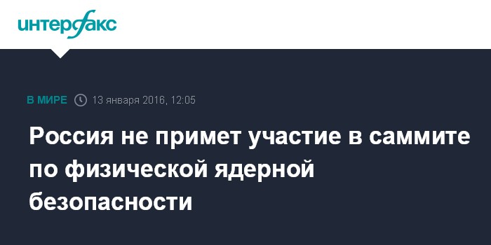 Москва. 13 января. INTERFAX.RU - Саммиты по физической ядерной безопасности (ФЯБ) "сыграли свою роль", их политическая повестка исчерпана, Россия прекратила подготовку к саммиту ФЯБ, который пройдет в 2016 году в Вашингтоне, заявила официальный представитель МИД РФ Мария Захарова.