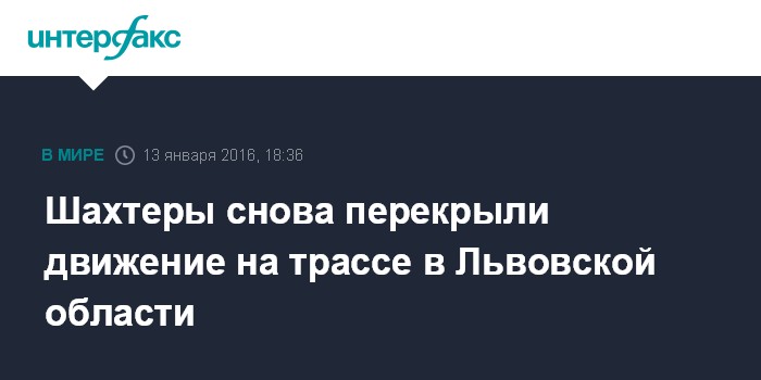 Москва. 13 января. INTERFAX.RU - Горняки шахт, входящих в состав госпредприятия "Львовуголь", в среду вновь перекрыли движение на трассе "Львов-Рава-Русская", сообщает пресс-служба управления ГАИ во Львовской области.