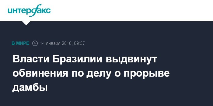 Москва. 14 января. INTERFAX.RU - Федеральная полиция Бразилии в среду проинформировала руководство Samarco Mineracao SA, совместного предприятия BHP Billiton и Vale, об уголовных обвинениях по делу о прорыве принадлежащей компании плотины в штате Минас-Жерайс, сообщает бразильское интернет-издание G1.