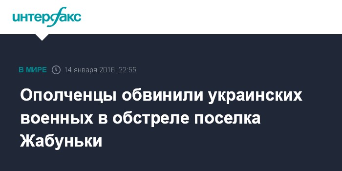 Москва. 14 января. INTERFAX.RU - Донецкие ополченцы заявили, что украинские военные обстреливают населенный пункт Жабуньки.