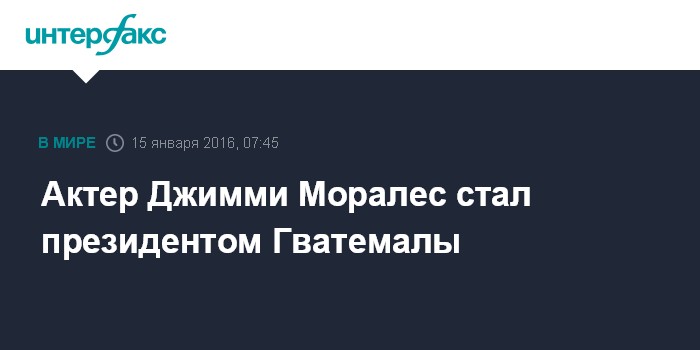 Москва. 15 января. INTERFAX.RU - Бывший комедийный актер Джимми Моралес вступил в пятницу в должность президента Гватемалы.