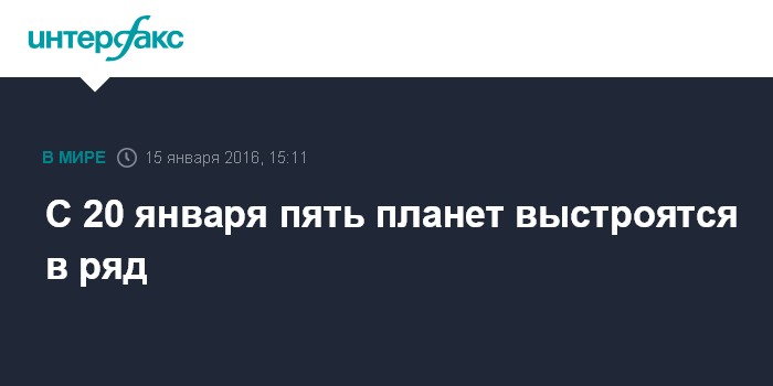 Москва. 15 января. INTERFAX.RU - 20 января все пять ярких планет - Меркурий, Венера, Марс, Юпитер и Сатурн - выстроятся в линию, видимую невооруженным глазом, сообщает Australian Geographic.