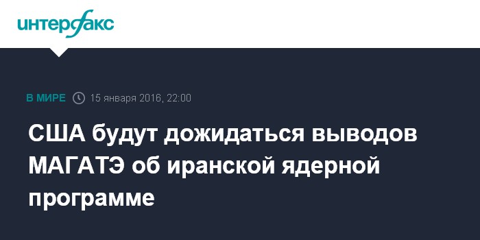 Москва. 15 января. INTERFAX.RU - Администрация США ожидает финальный доклад МАГАТЭ по Ирану, и только после получения этого документа сможет начать отмену санкций против этой страны, сообщает в пятницу агентство АП.