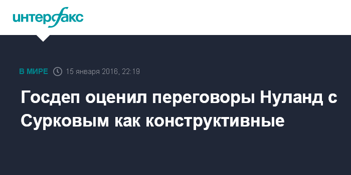 Москва. 15 января. INTERFAX.RU - Переговоры в Калининграде между помощником госсекретаря США Викторией Нуланд и помощником президента РФ Владиславом Сурковым прошли конструктивно, заявил в пятницу представитель госдепа Джон Кирби.