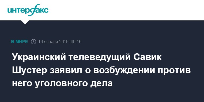 Москва. 16 января. INTERFAX.RU - Работающий на Украине журналист и телеведущий Савик Шустер заявляет, что в отношении него открыто уголовное производство за якобы неуплату налогов.