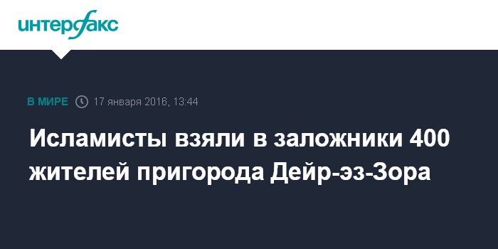 Москва. 17 января. INTERFAX.RU - Боевики "Исламского государства" (террористическая организация, запрещенная в России) захватили не менее 400 человек в районе сирийского города Дейр-эз-Зора, сообщает в воскресенье базирующийся в Лондоне сирийский Наблюдательный совет по правам человека.
