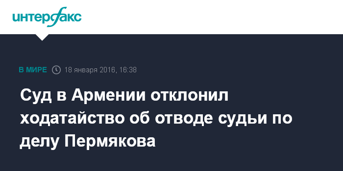 Суд в Армении отклонил ходатайство об отводе судьи по делу Пермякова