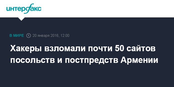 Москва. 20 января. INTERFAX.RU - Сайты посольств и постоянных представительств Армении подверглись атаке хакеров, сообщил специалист в области информационной безопасности Самвел Мартиросян.