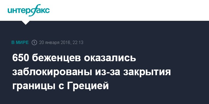 Москва. 20 января. INTERFAX.RU - Македония в среду закрыла для беженцев границу с Грецией, мотивировав этот шаг проблемами с их дальнейшим транзитом по балканскому пути, сообщает сербский телерадиоканал РТС.