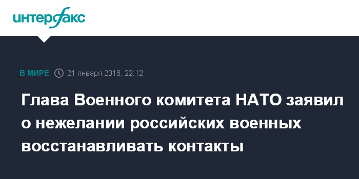 Москва. 21 января. INTERFAX.RU - Россия пока не стремится к восстановлению с НАТО контактов по линии военных, утверждает председатель Военного комитета НАТО чешский генерал Петр Павел.