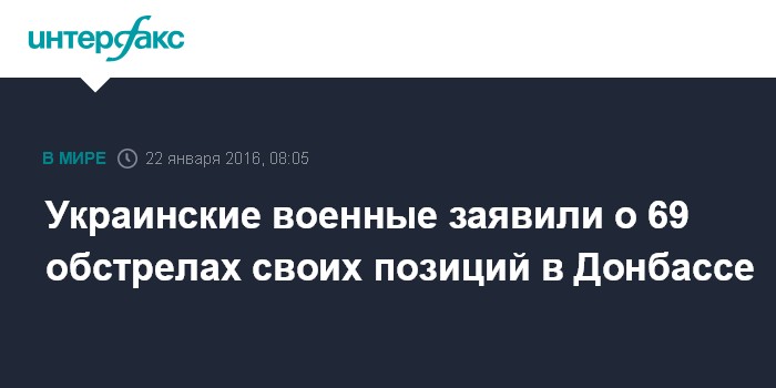 Москва. 22 января. INTERFAX.RU - Позиции украинских военных в Донбассе в минувшие сутки обстреливались 69 раз, сообщает в пятницу утром пресс-центр силовой операции в "Фейсбуке".
