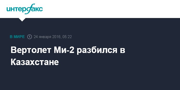 Москва. 24 января. INTERFAX.RU - В Жамбылской области (на юге) Казахстана разбился вертолет Ми-2.