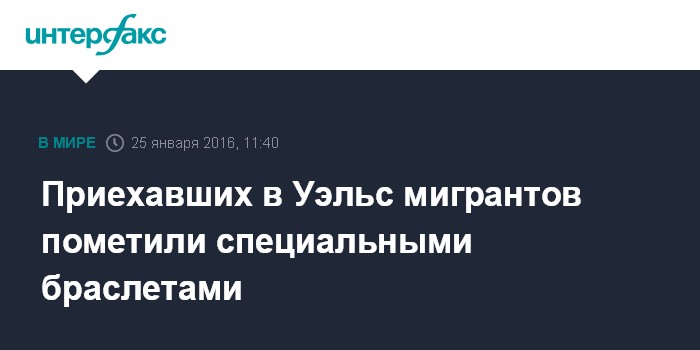 Москва. 25 января. INTERFAX.RU - Палату общин Великобритании заинтересовала ситуация в Уэльсе, где прибывающим мигрантам выдают специальные яркие браслеты, сообщает The Guardian.